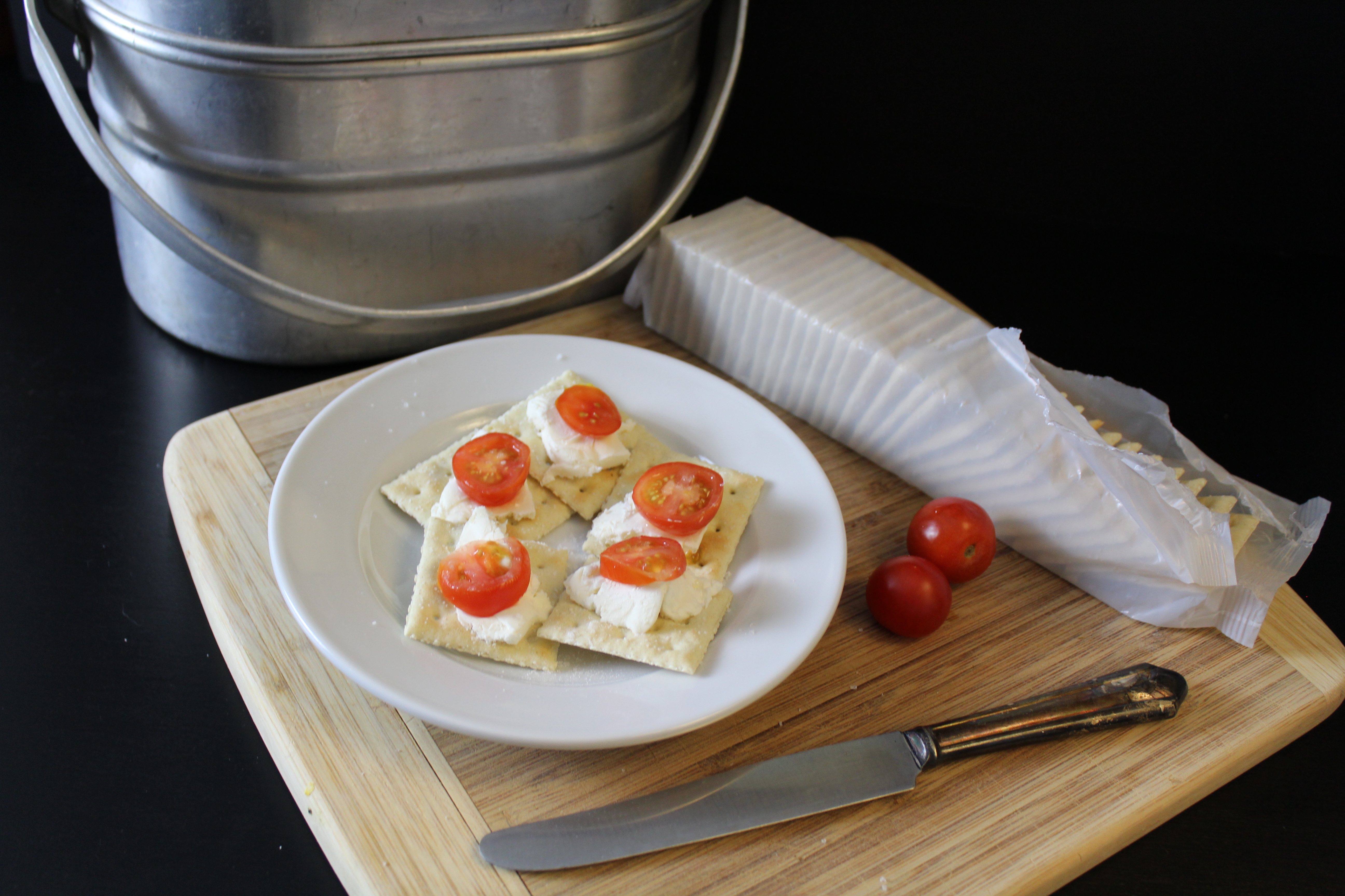 Recently I started to think about this snack again and made them for my husband. These ingredients have all been in our house before but had not come together in this way. He liked them so much he looked at our last cherry tomato and said we can’t just leave it alone, so we made four more crackers. Eating this snack together gave us both joy. For my husband he was surprised to have discovered a new snack to enjoy on a summer evening after work. For me it was the ability to share something from my past and have it appreciated by the one I love in the present.