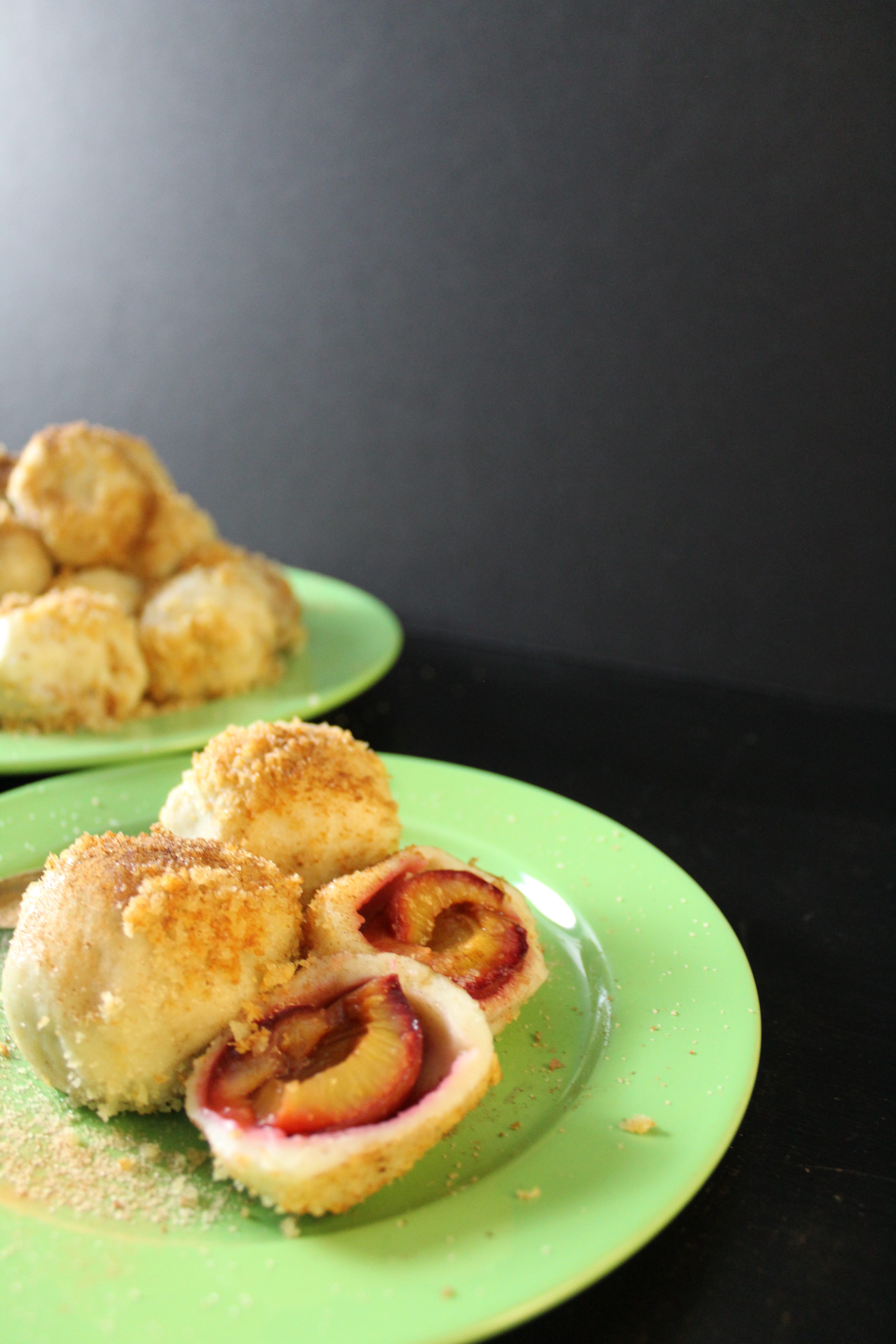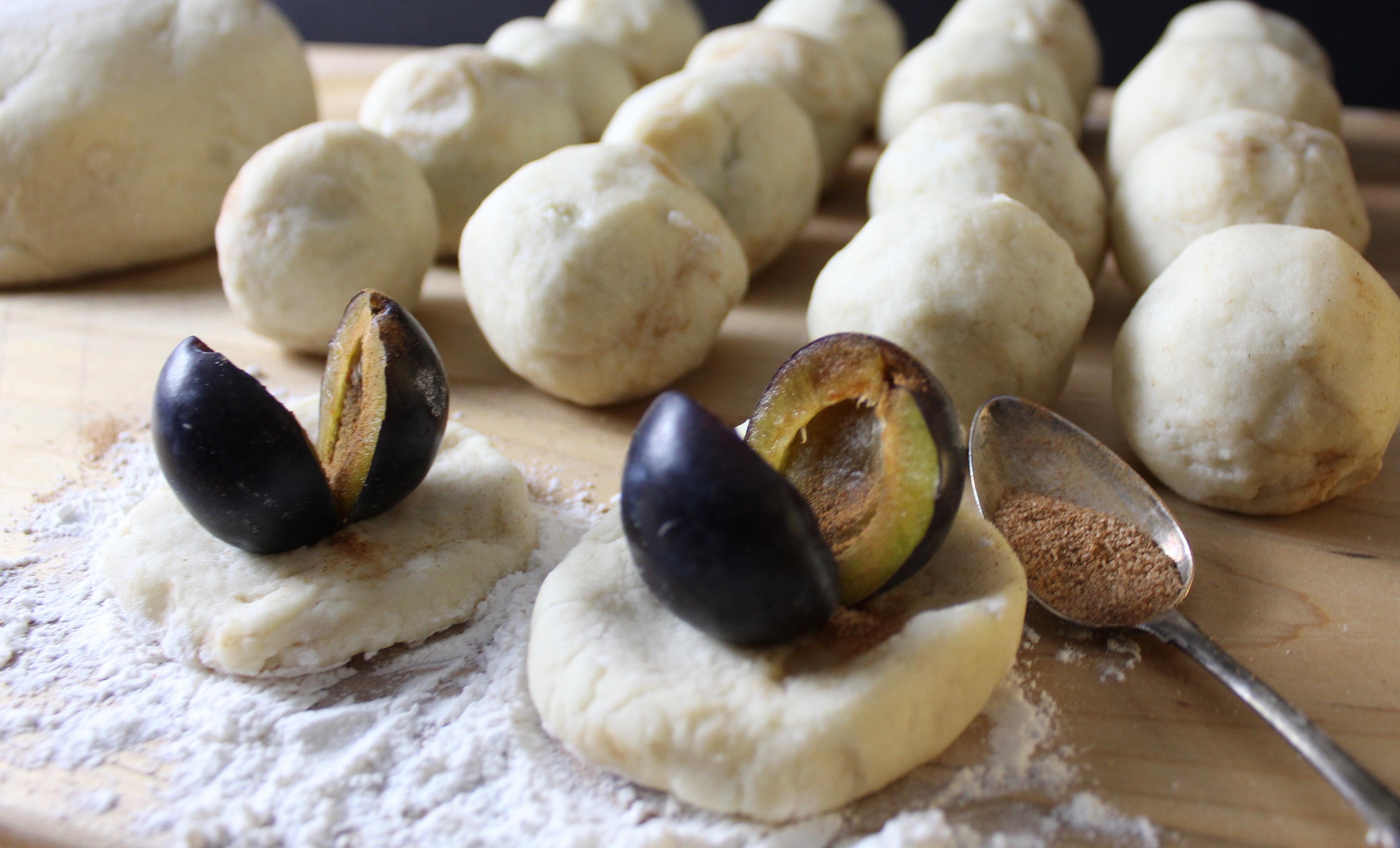 It’s August and Italian prune plums have appeared at my local grocery store. These small plums, around the size of a golf ball, make wonderful dumplings. Earlier this summer to prepare I posted my Knedle Peach Potato Dumpling recipe. The season for these Italian prune plums is short but sweet, and we used to hustle to make as many of these as we could with grandma. Now that these plums are here my heart knows that summer is coming to a close soon.